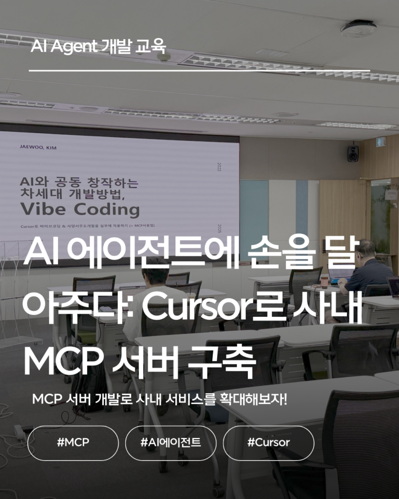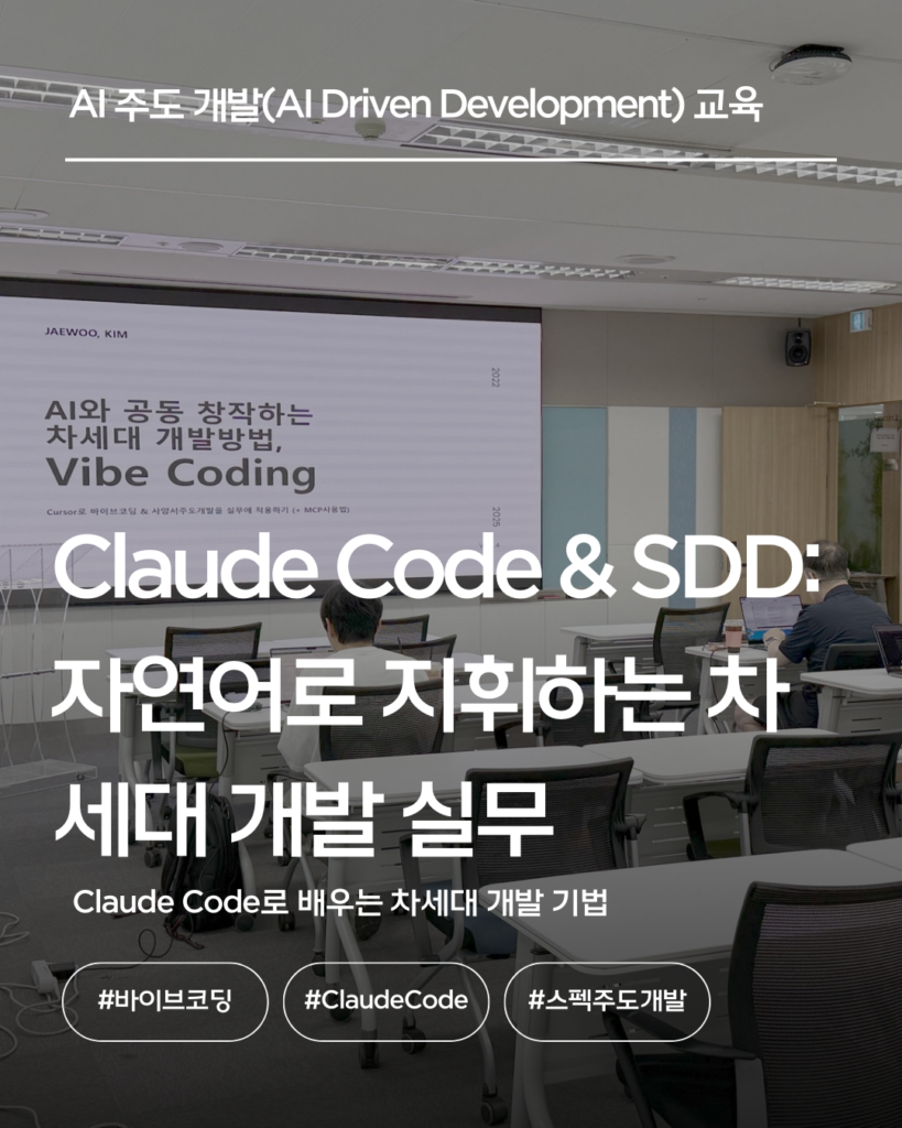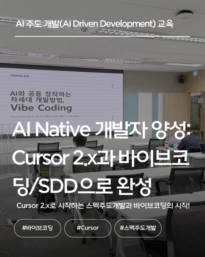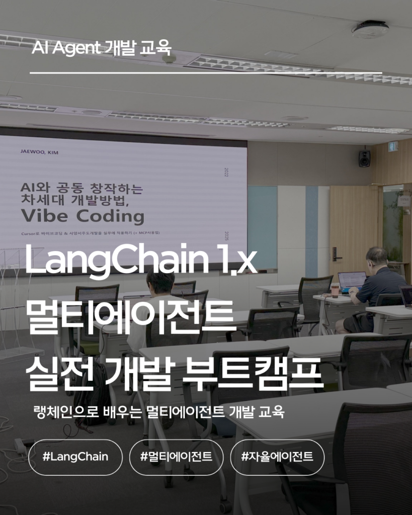 기업대상 엔지니어를 대상으로 Cursor 2.x 또는 Claude Code 기반 바이브코딩(VibeCoding), 스펙주도개발(SDD) 교육, 멀티에이전트 개발 교육, LangChain/LangGraph 1.x기반 자율 AI에이전트 개발 교육을 전문적으로 하고 있습니다.